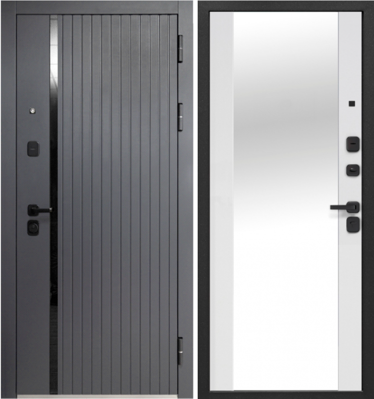 Дверь 10 см 2 МДФ Букле Графит Зеркало Эмалит Белый